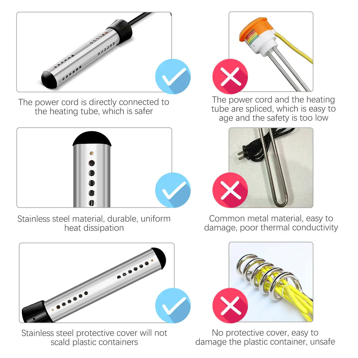 Portable Pool Water Heater 1500W Immersion Tubular Electric Heater with Digital Thermometer